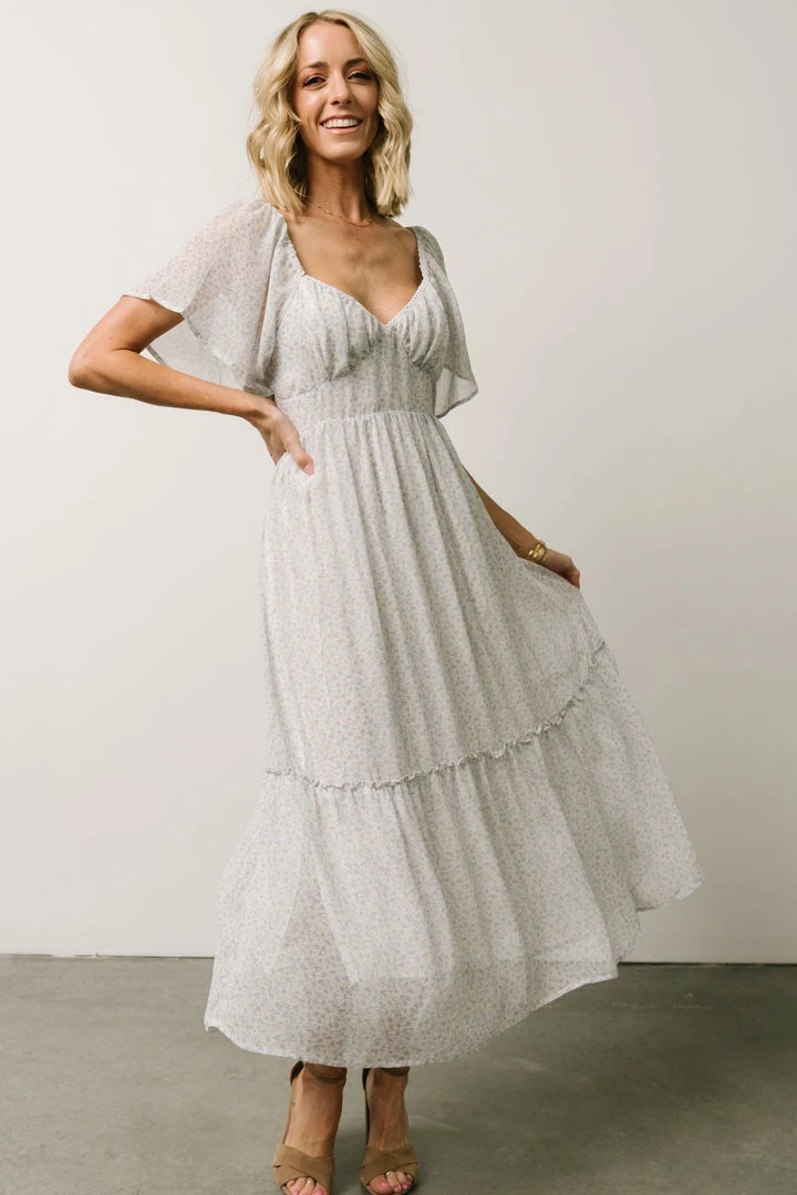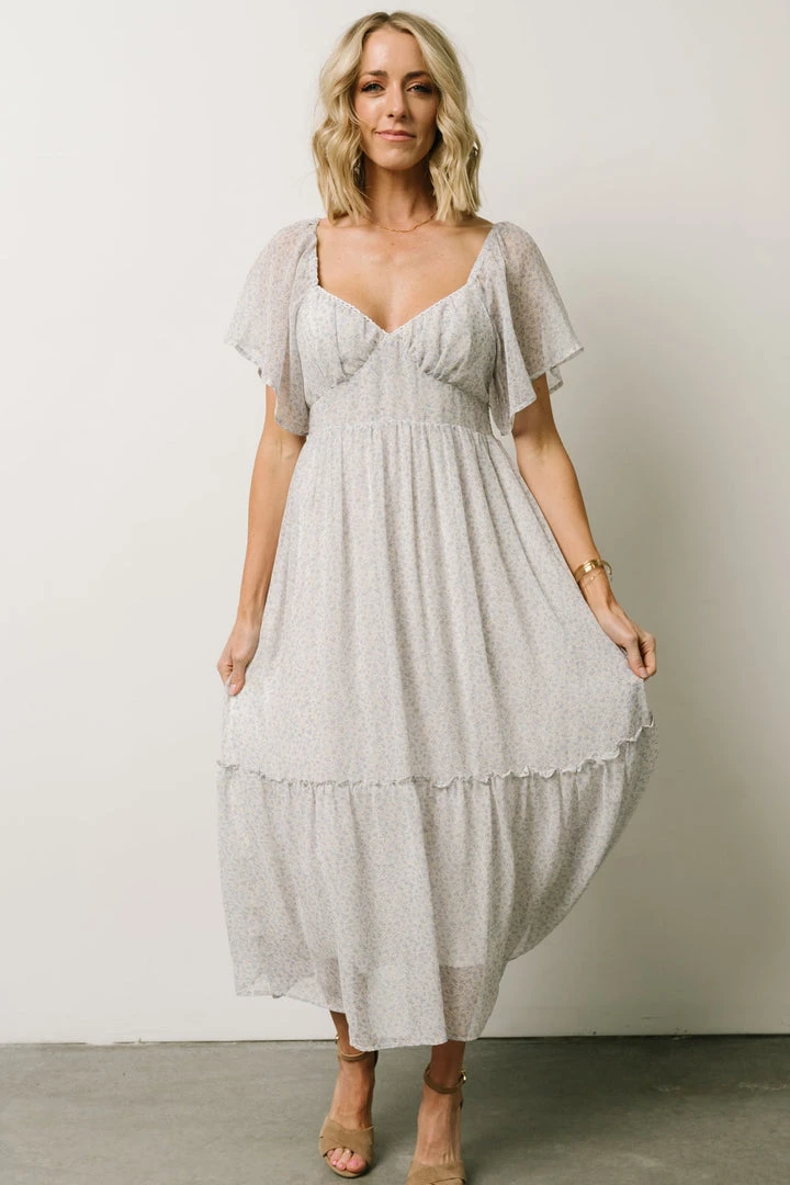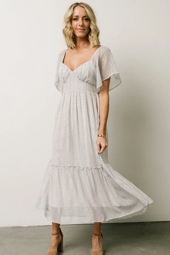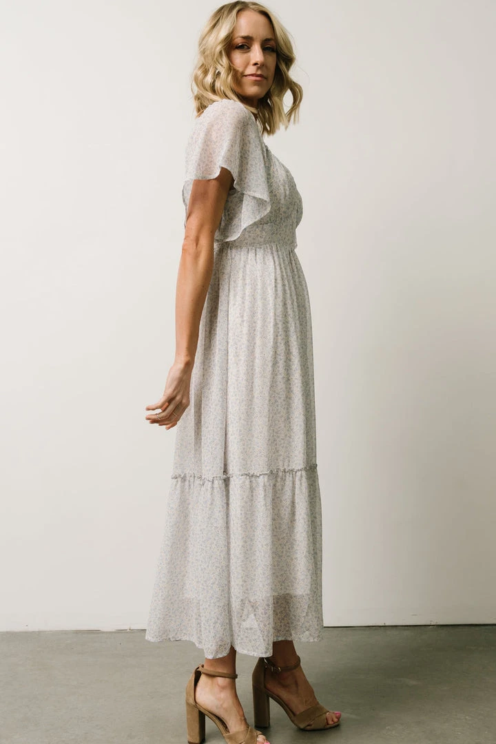 IL Dresses Patience Midi Dress | Dusty Blue + Off White Print