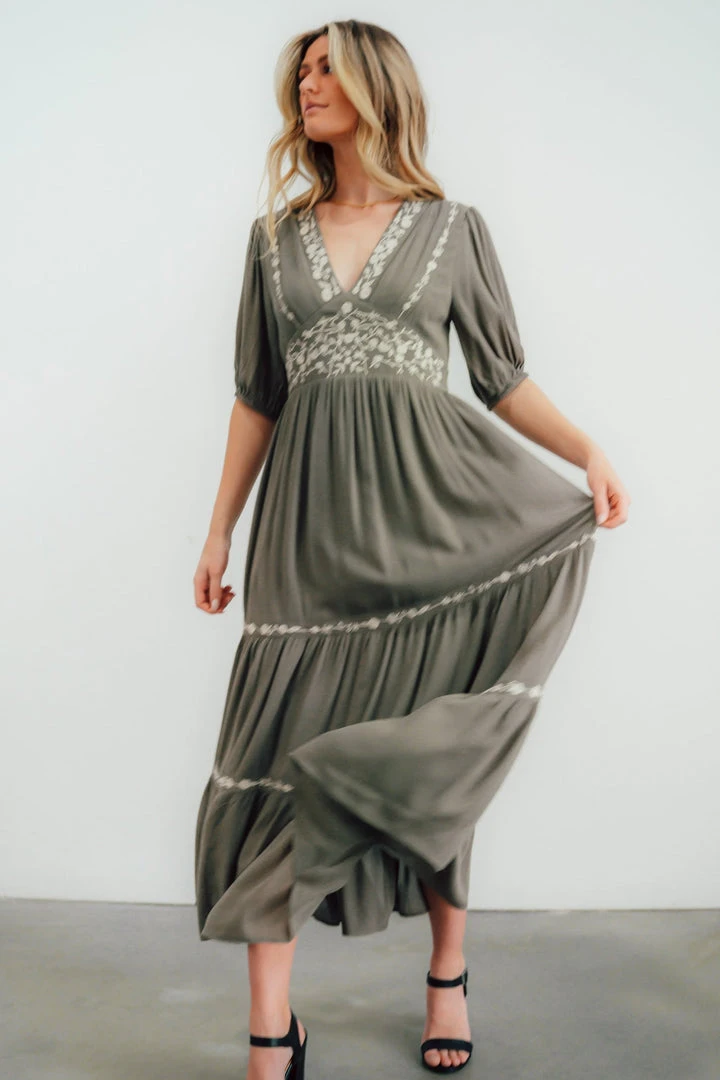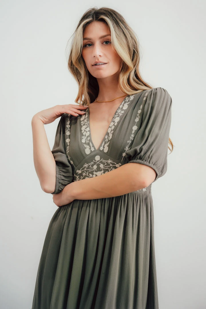 IL Santa Fe Embroidered Dress | Dusty Olive