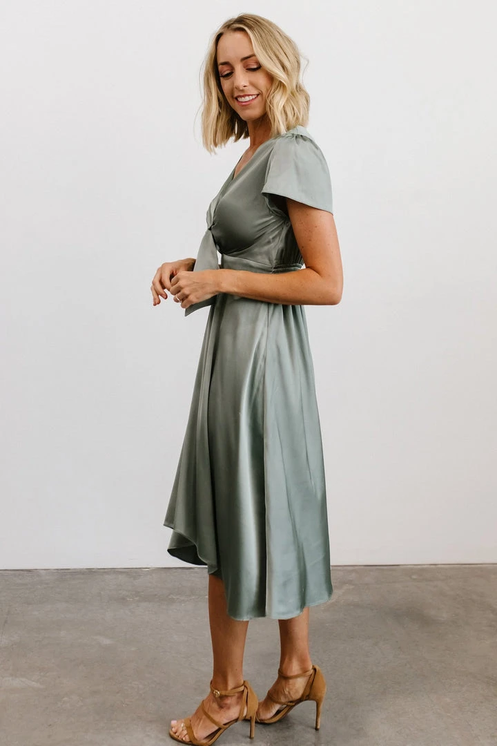 JH Dresses Poppy Satin Midi Dress | Eucalyptus