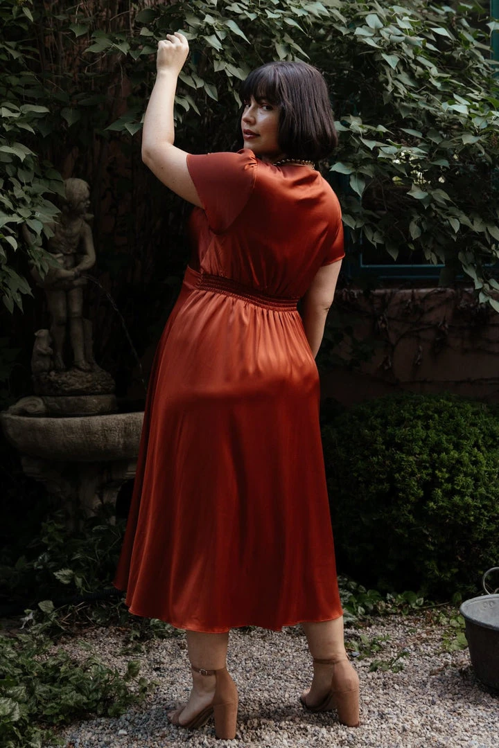 JH Dresses Poppy Satin Midi Dress | Rust