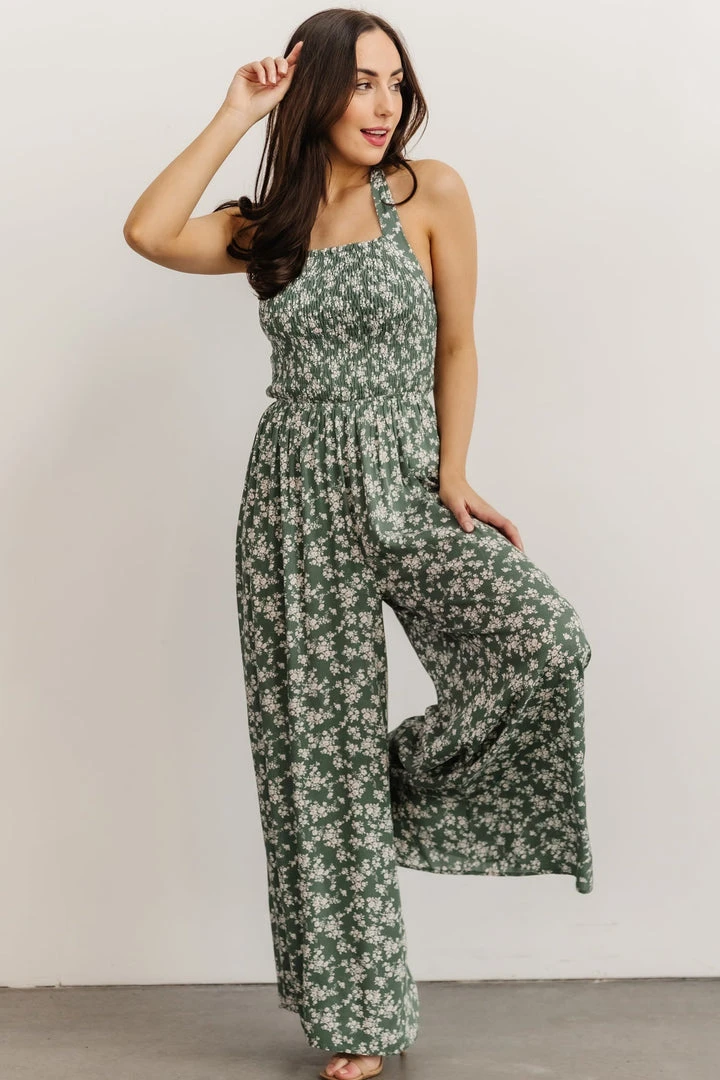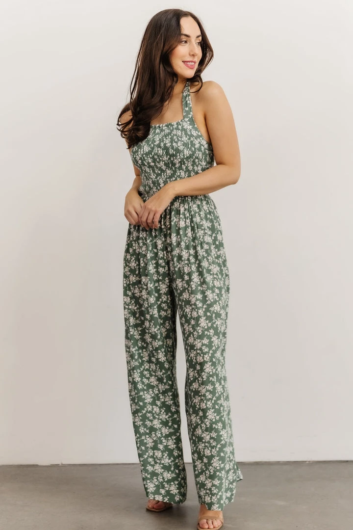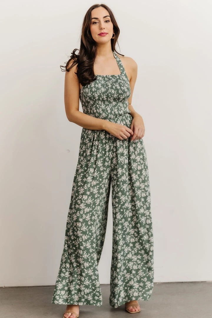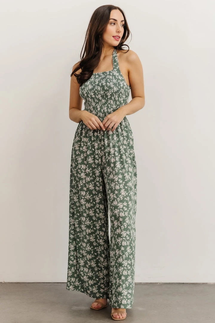 KM Lana Halter Jumpsuit | Green Floral Boho
