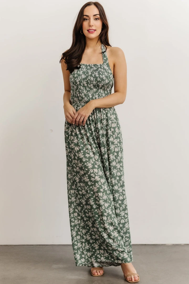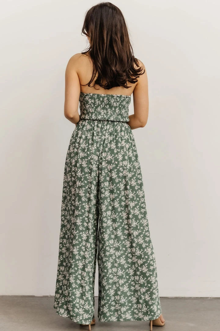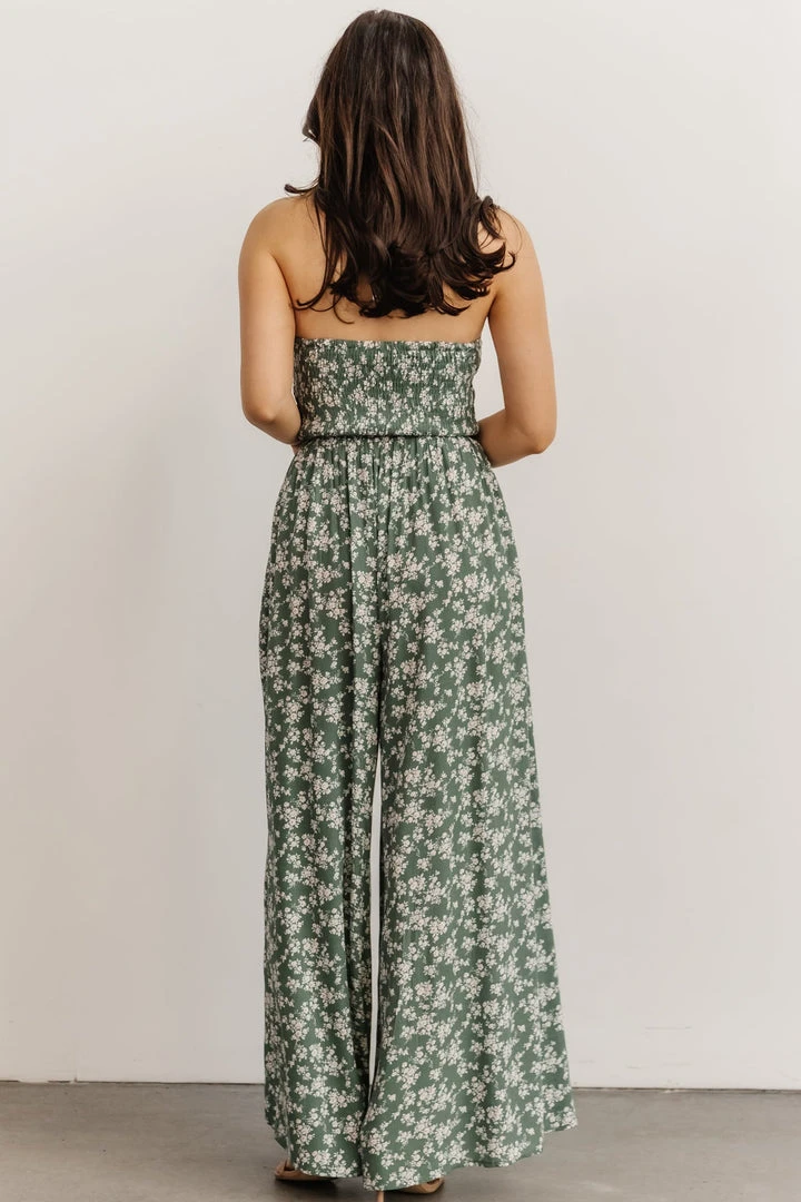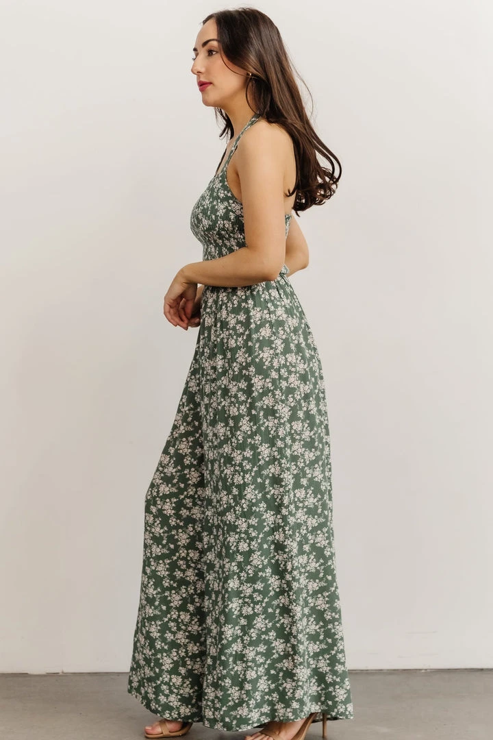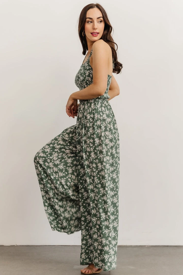KM Lana Halter Jumpsuit | Green Floral Boho