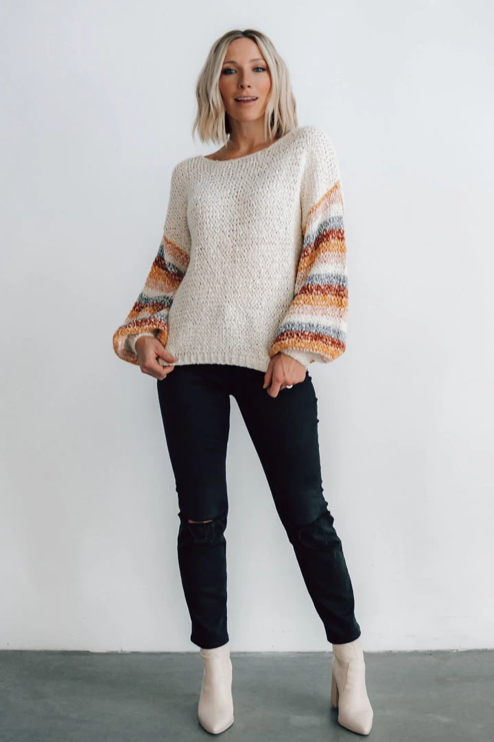LUM Robledo Chunky Knit Stripe Sweater | Oatmeal