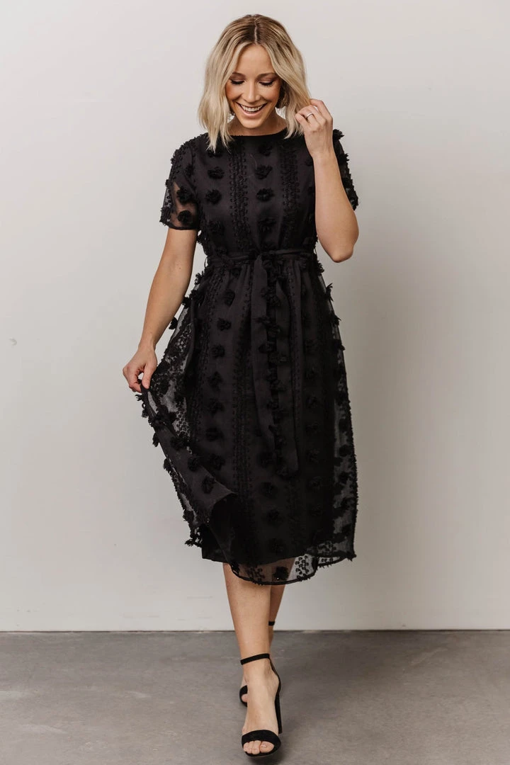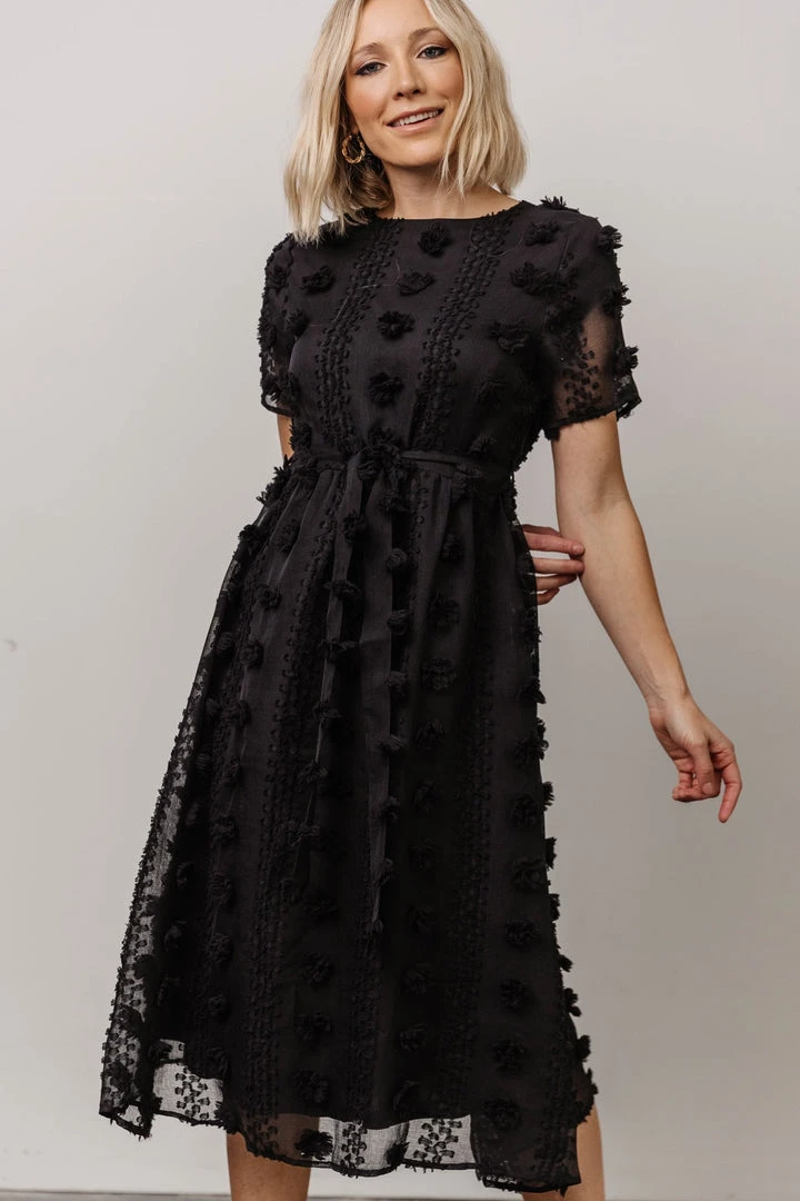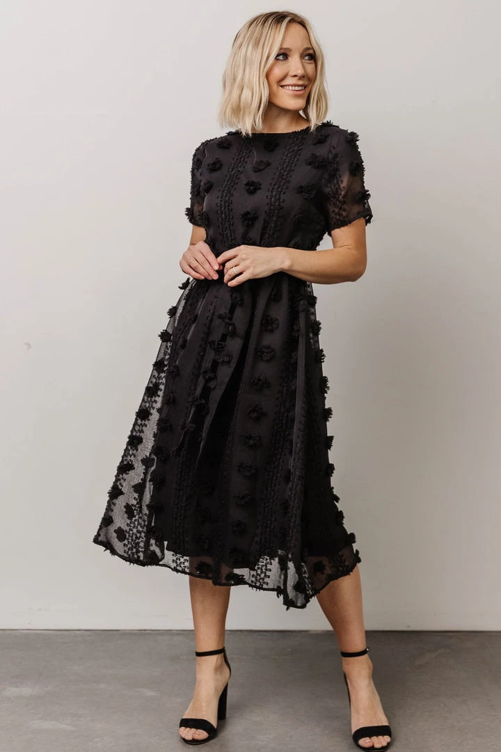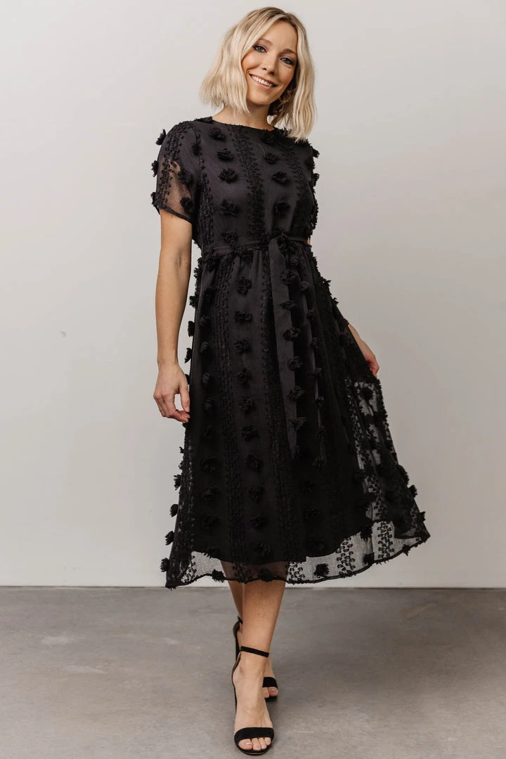 POL Darbi Floral Dot Midi Dress | Black Dresses