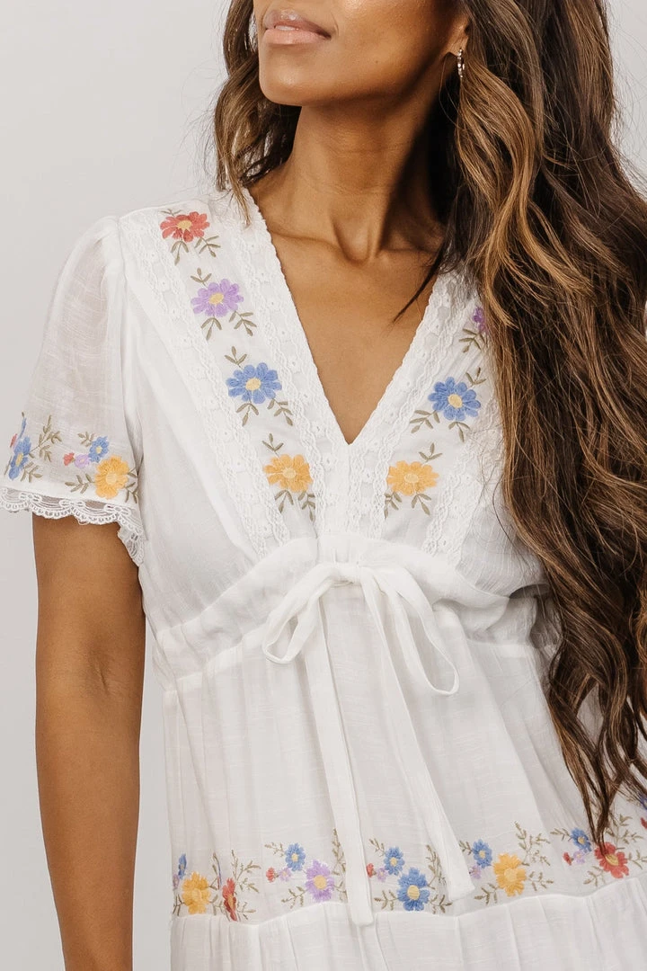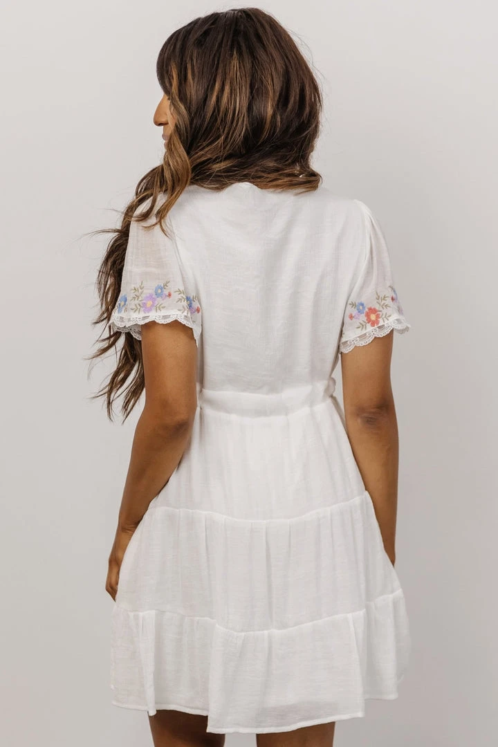 POL Dresses Alexis Embroidered Baby Doll Dress | Off White Multi