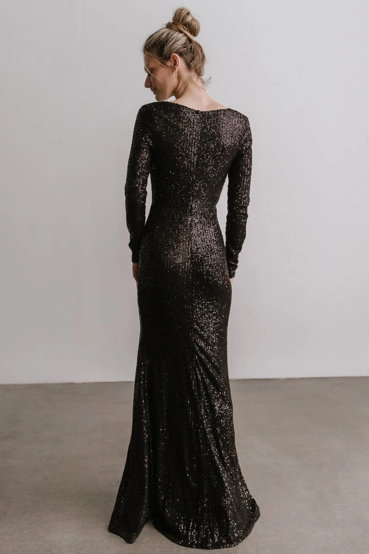 RR Charlize Cowl Neck Sequin Gown | Black