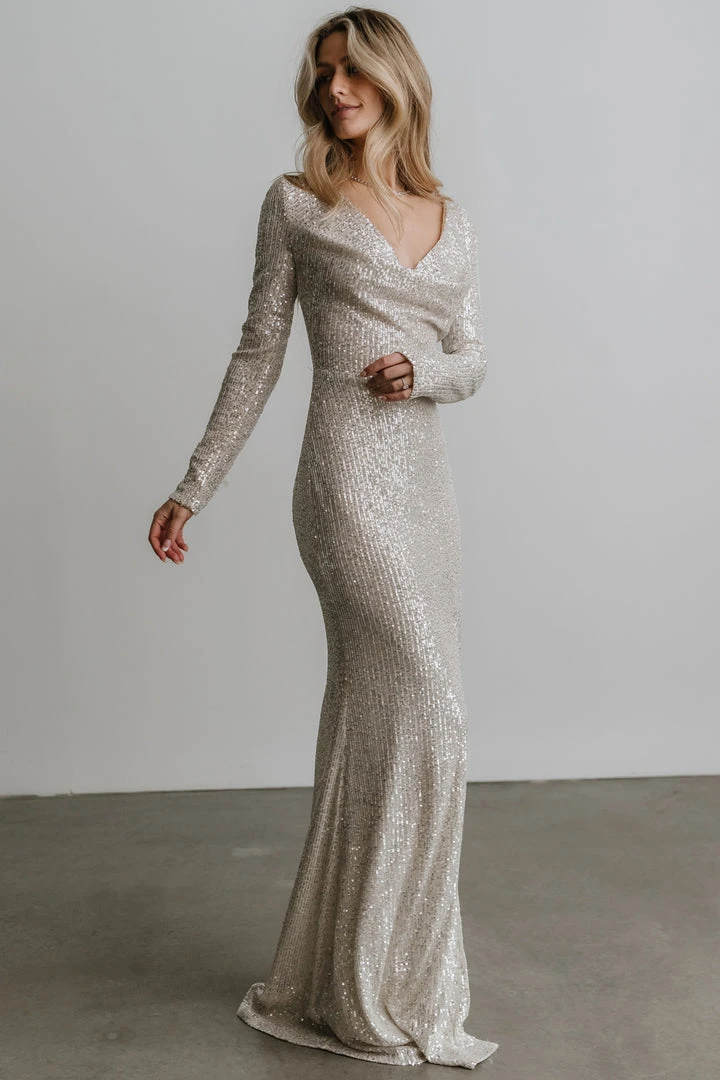 RR Charlize Cowl Neck Sequin Gown | Cream