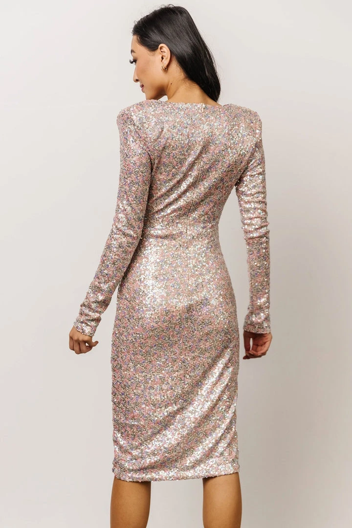 RR Dresses Marissa Sequin Midi Dress | Pink Multi
