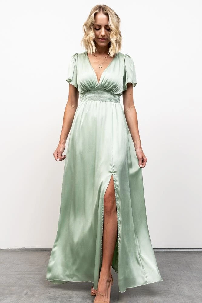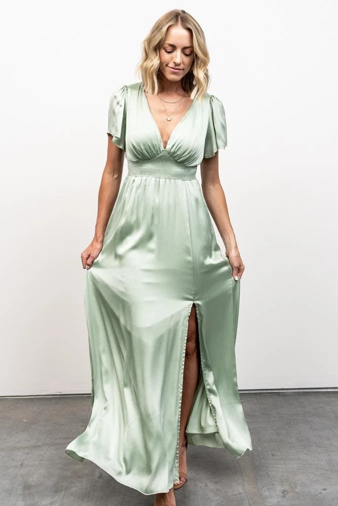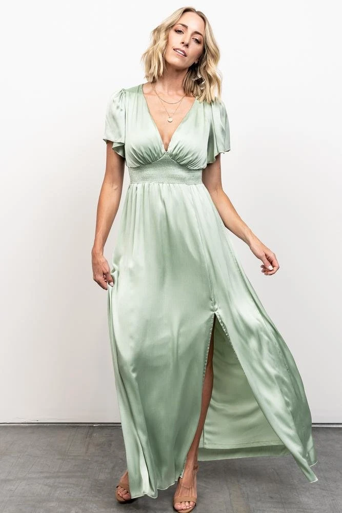 RR Dresses Prague Satin Maxi Dress | Sage