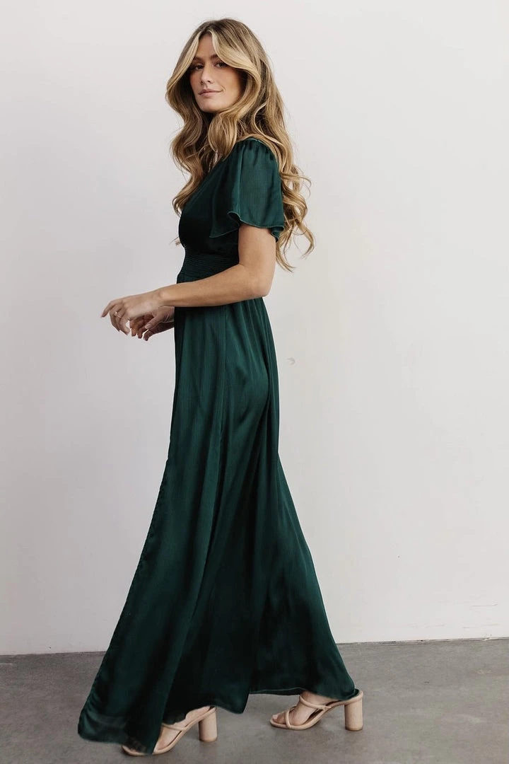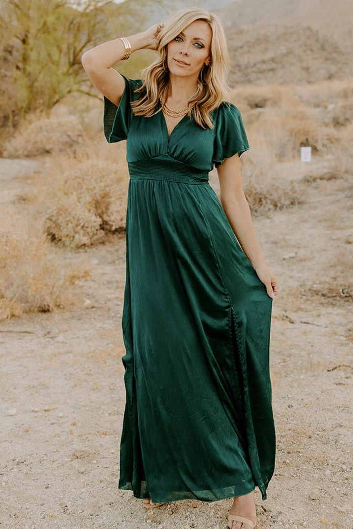 RR Prague Satin Maxi Dress | Dark Green Dresses