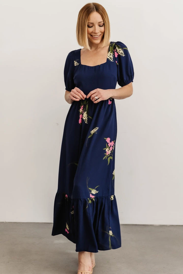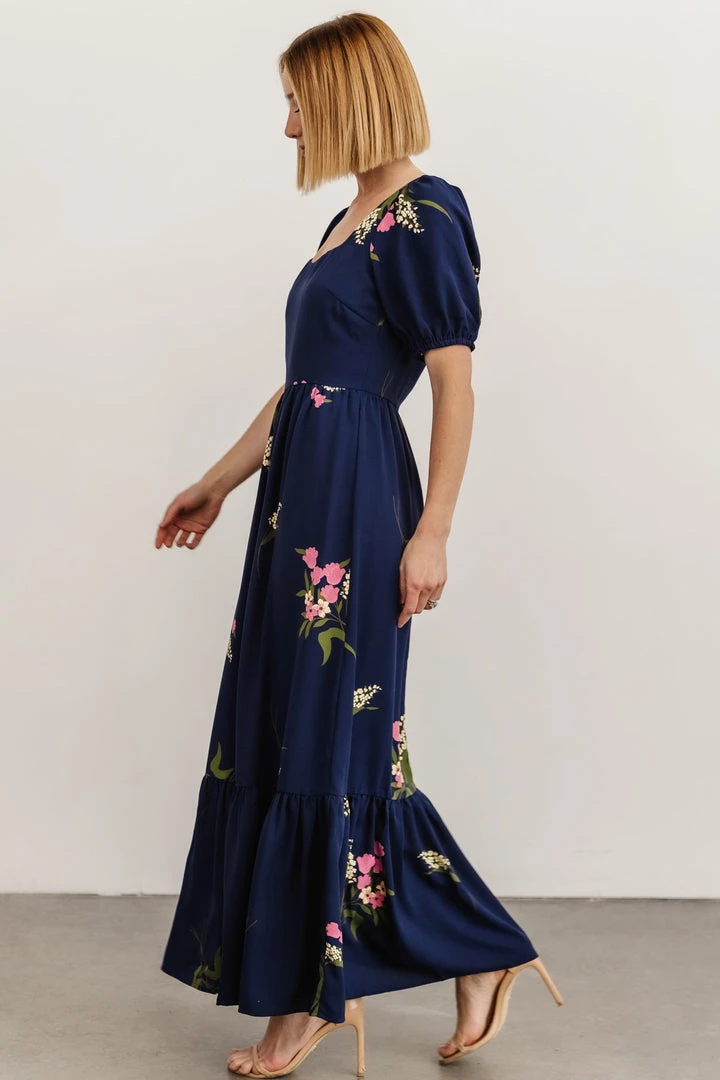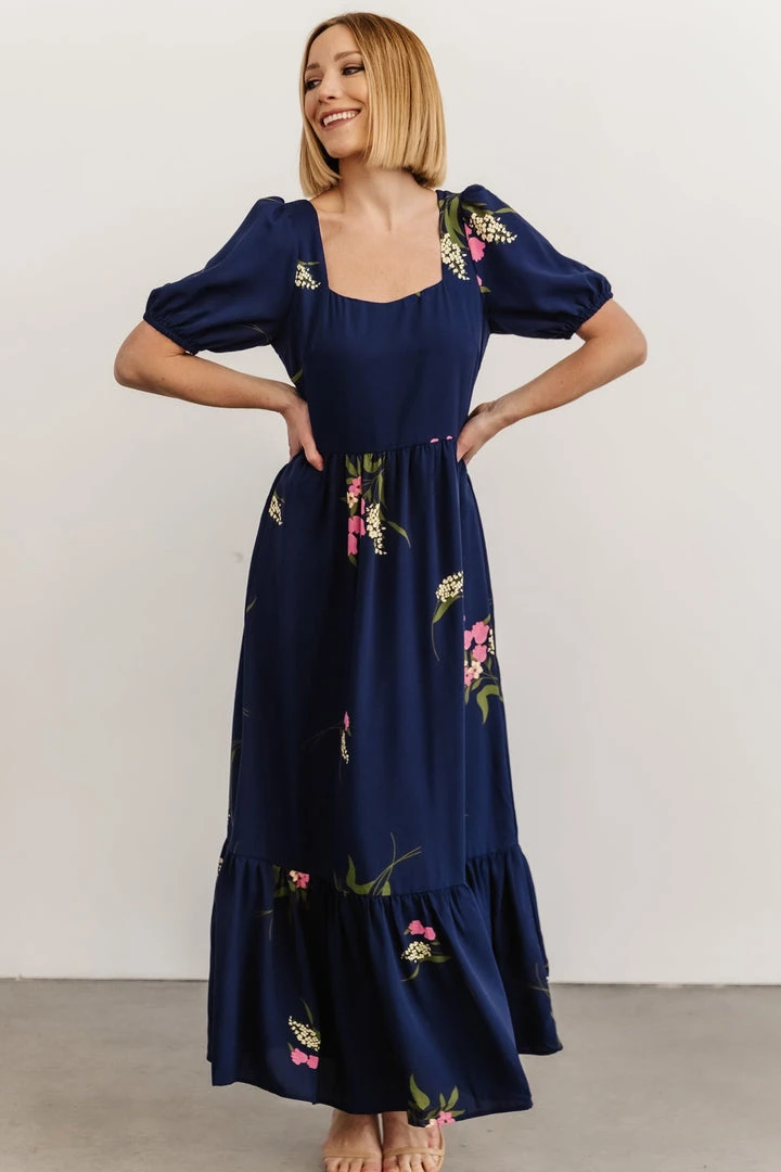 SL Abby Square Neck Maxi Dress | Navy Blue Floral