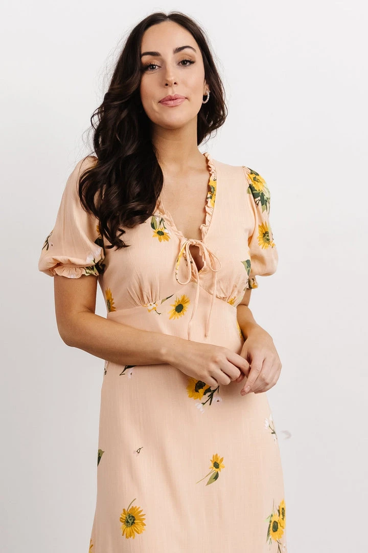 SL Dresses Avalon Front Tie Dress | Peach Floral