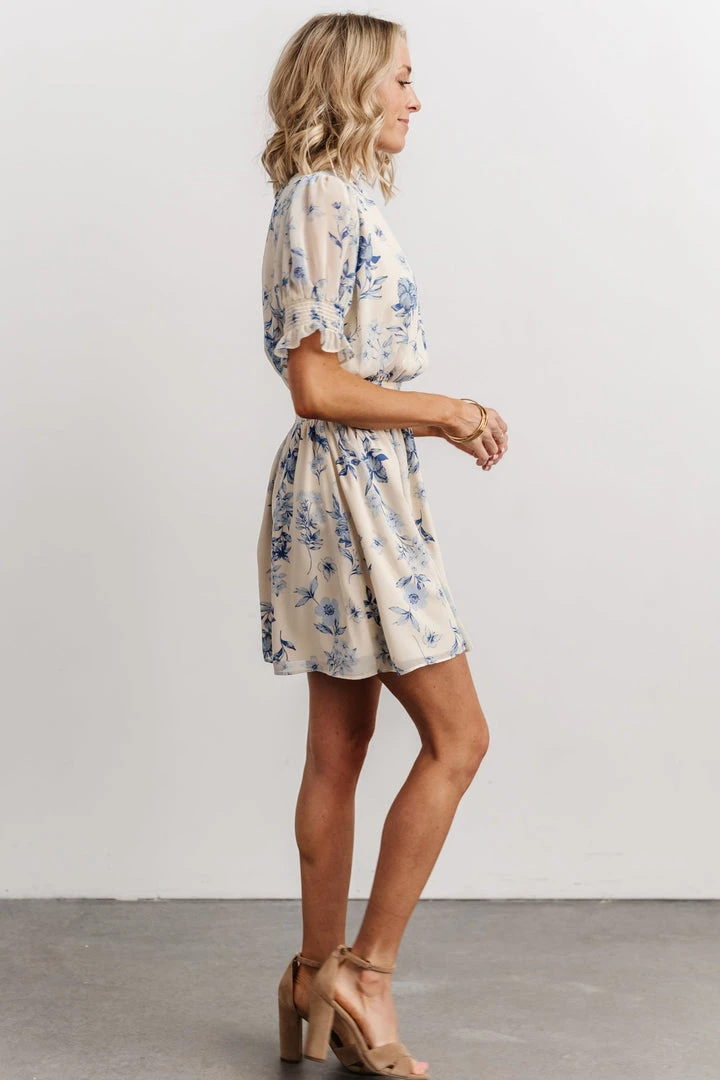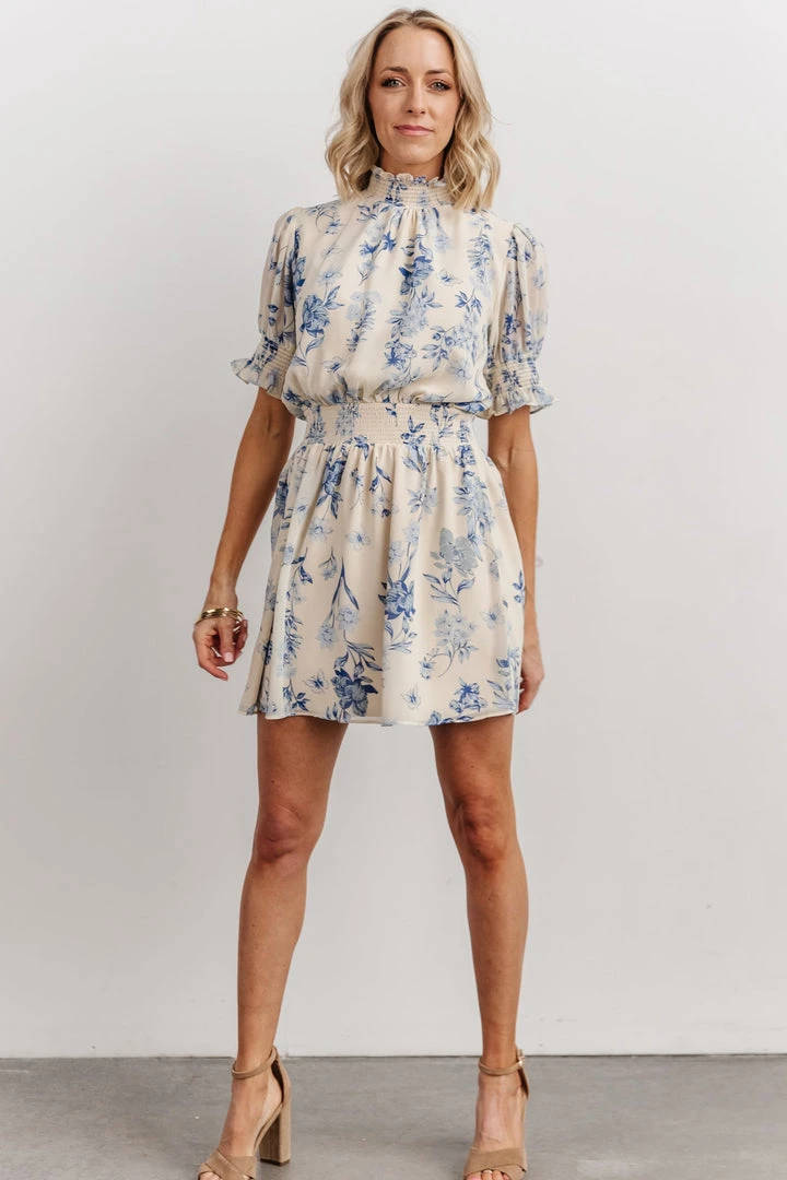 SL Indie Mock Neck Mini Dress | Cream + Blue Floral Dresses