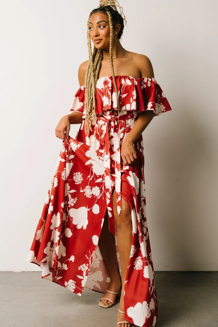 Soi Berlynn Off Shoulder Maxi Dress | Rust + Cream Floral