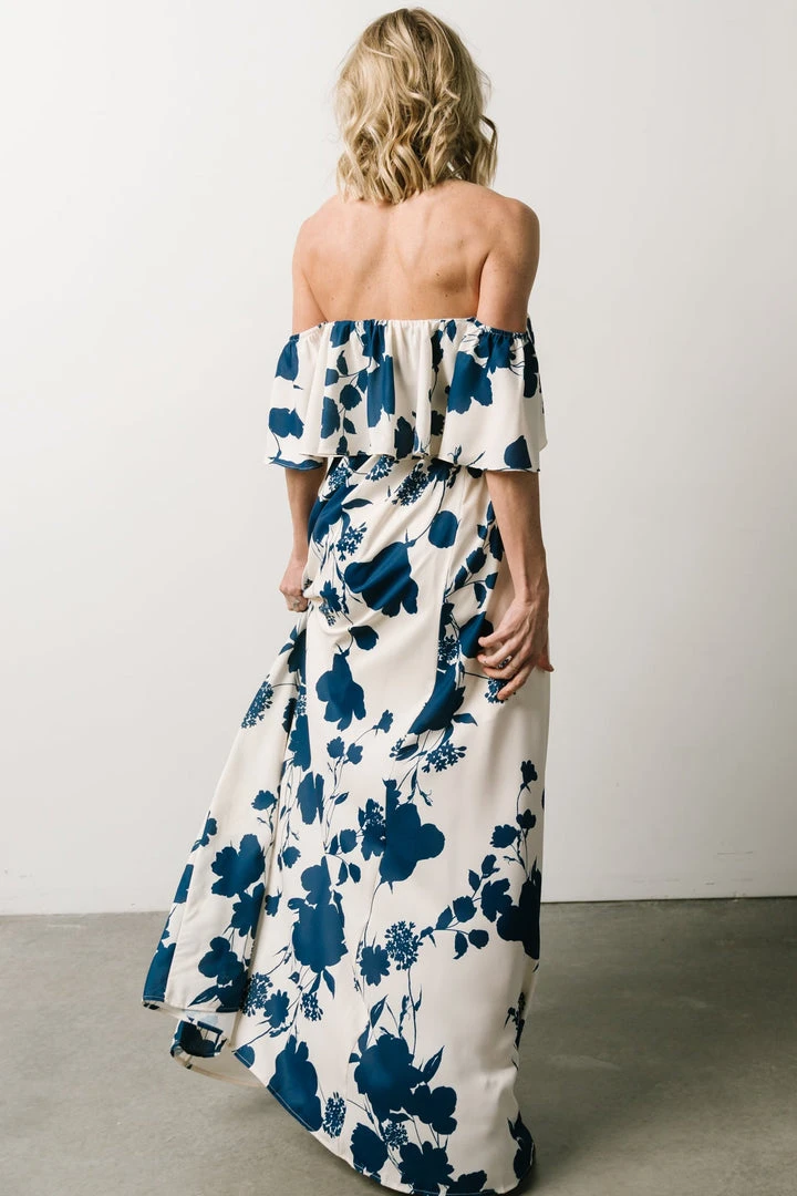 Soi Dresses Berlynn Off Shoulder Maxi Dress | Cream + Navy Floral