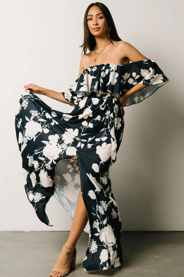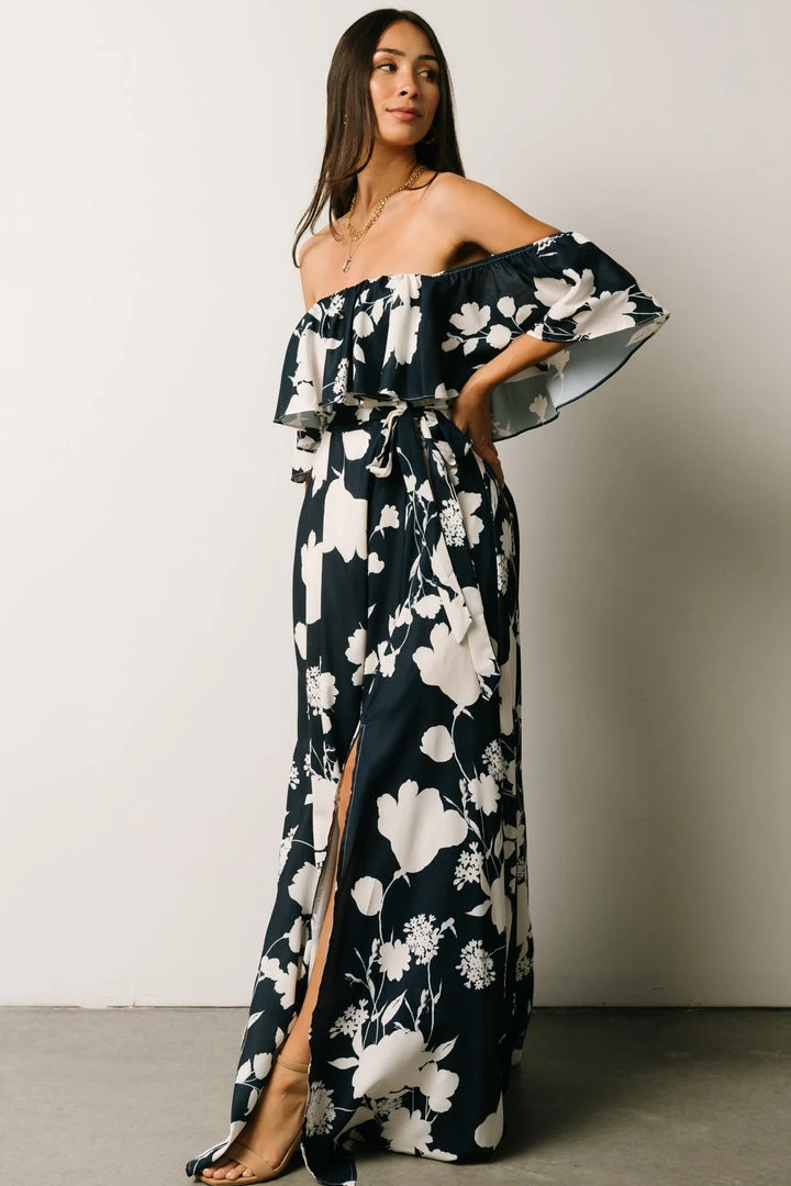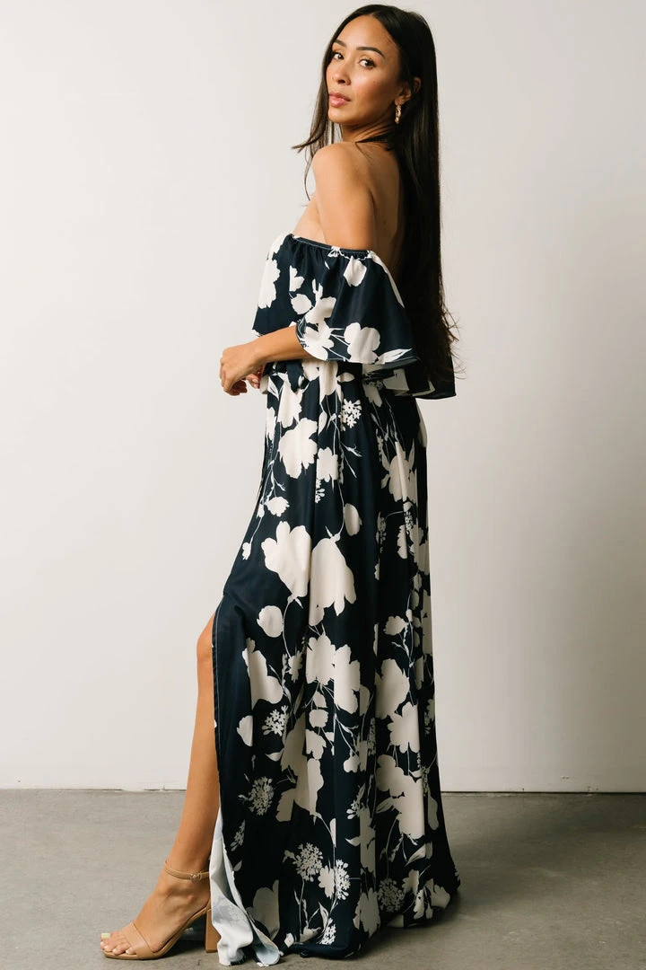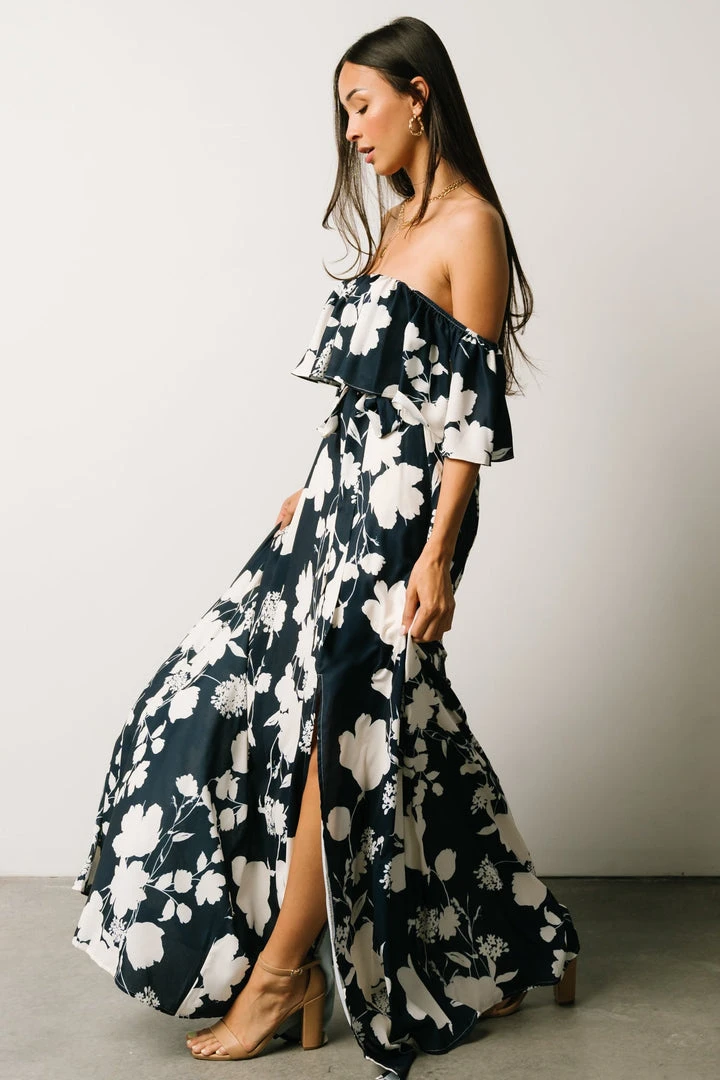 Soi Dresses Berlynn Off Shoulder Maxi Dress | Dark Blue Floral