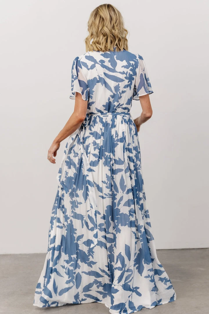 Soi Dresses Ranier Pleated Wrap Maxi Dress | French Blue Print